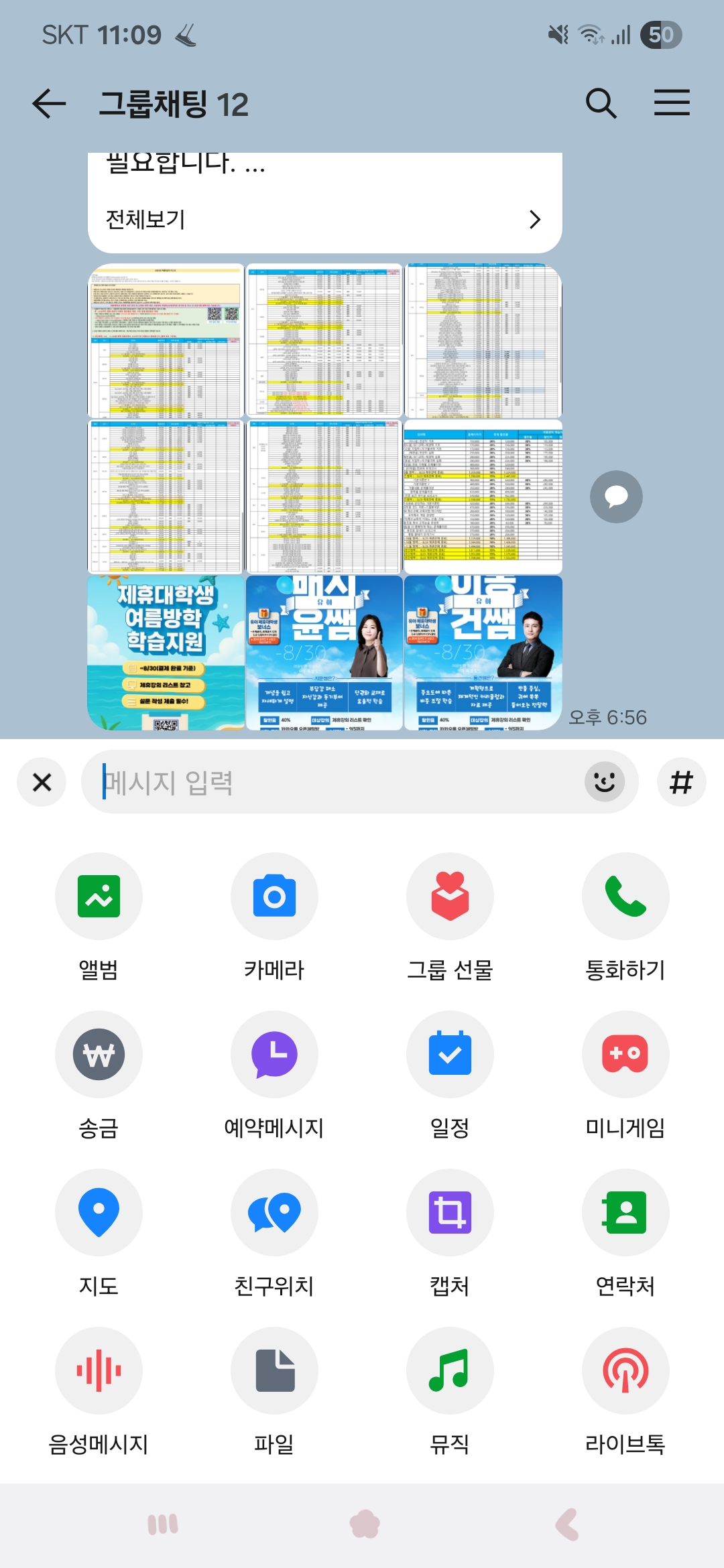 - 원하는 채팅방을 열고, 채팅 입력창 좌측 하단의 '+'(플러스) 버튼 터치